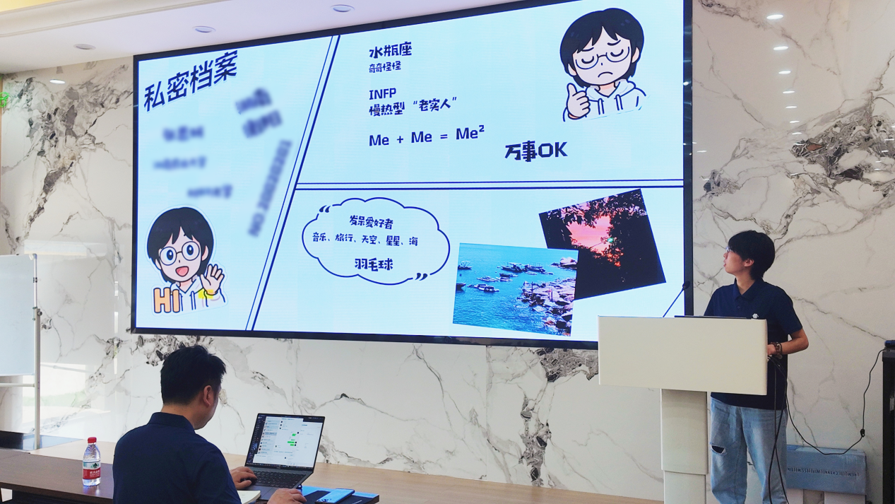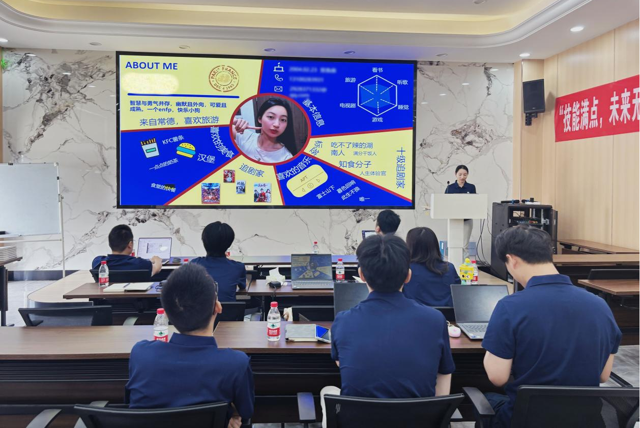 本次开营仪式的一大亮点,是全体管培生别开生面的“AI赋能式”自我介绍与前期工作总结汇报。摒弃了传统的PPT演讲,管培生们巧妙运用AI工具,以充满科技感和个性化的方式,生动展示了各自的学业背景、专业技能、兴趣爱好以及对加入公司的期待。他们或通过AI生成的创意海报展现个人特质,或用数据可视化图表清晰呈现过往工作成果,甚至通过AI视频进行自我介绍,充分展现了新一代青年才俊对前沿技术的娴熟运用、清晰的逻辑思维与卓越的表达能力。AI技术的引入,也呼应了湖南中钢集团拥抱创新、鼓励多元表达的开放文化。